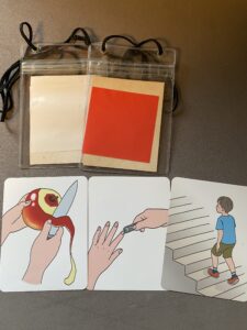 何気なく使っていることばを、カードを用いて説明する活動を通して、だれ、なに、どうするといったキーワードを使い、表現しました。知らない言葉や助詞の使い方も学ぶことができました。ババぬきのルールの説明では、どの情報が大切なのかを教えてもらい確認できました。